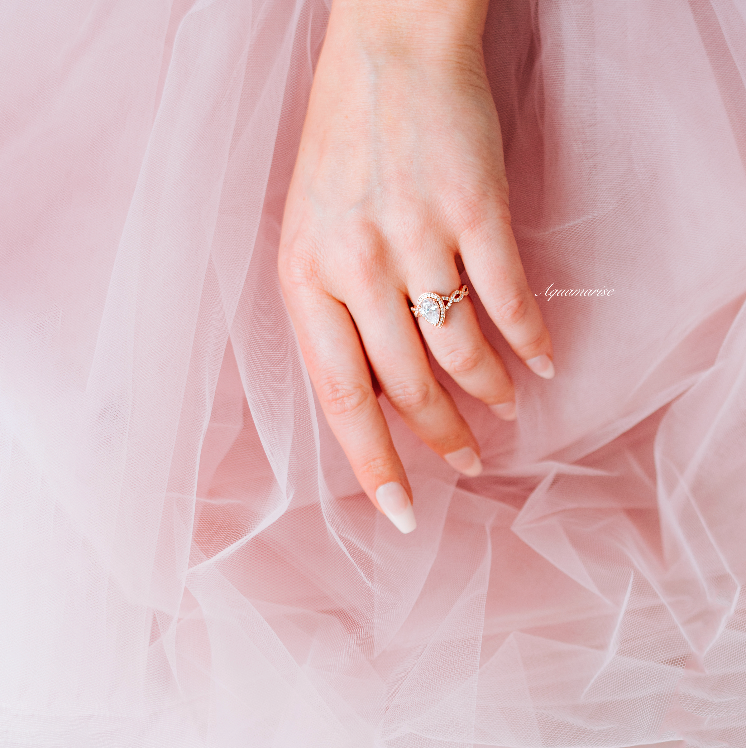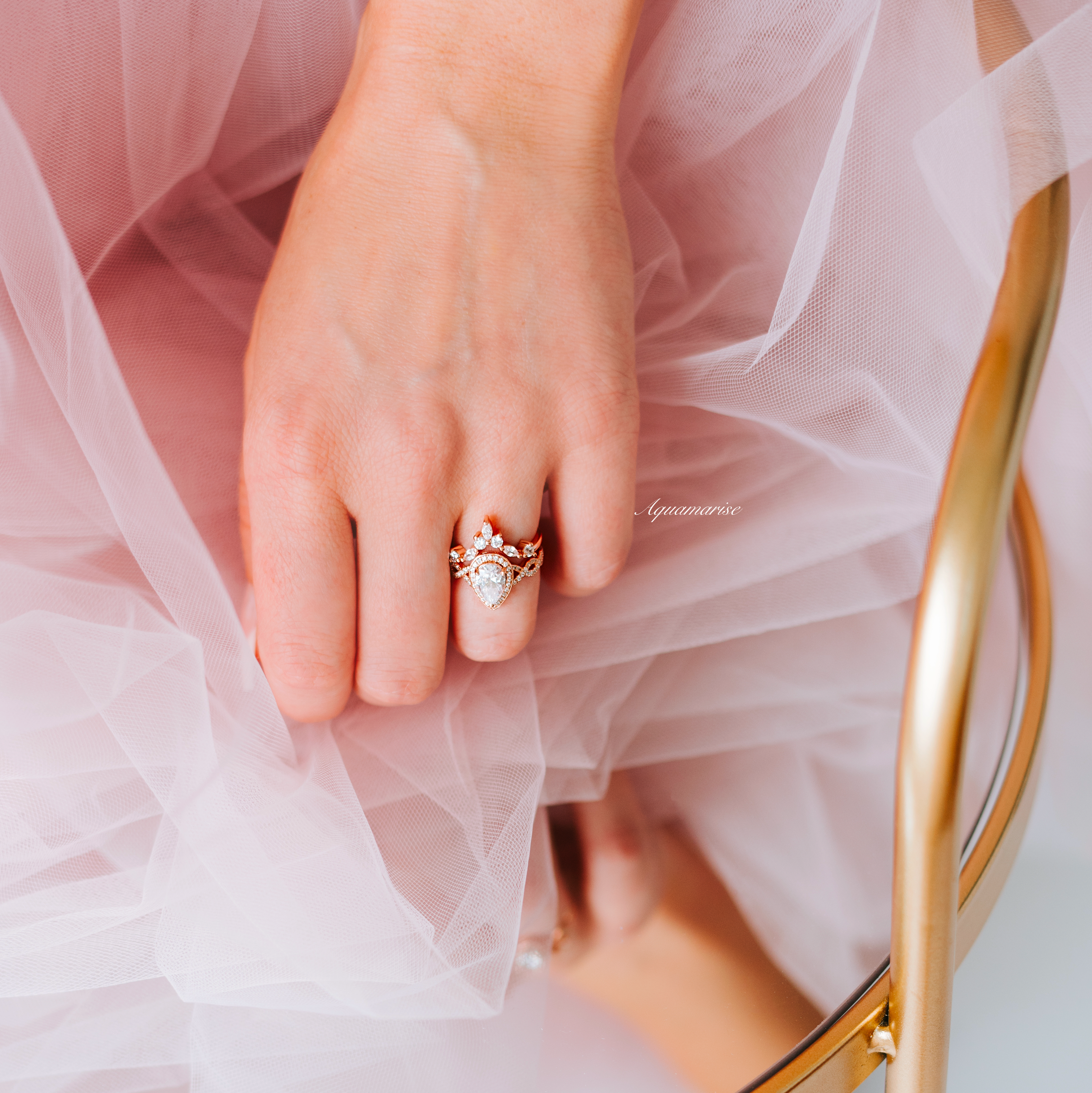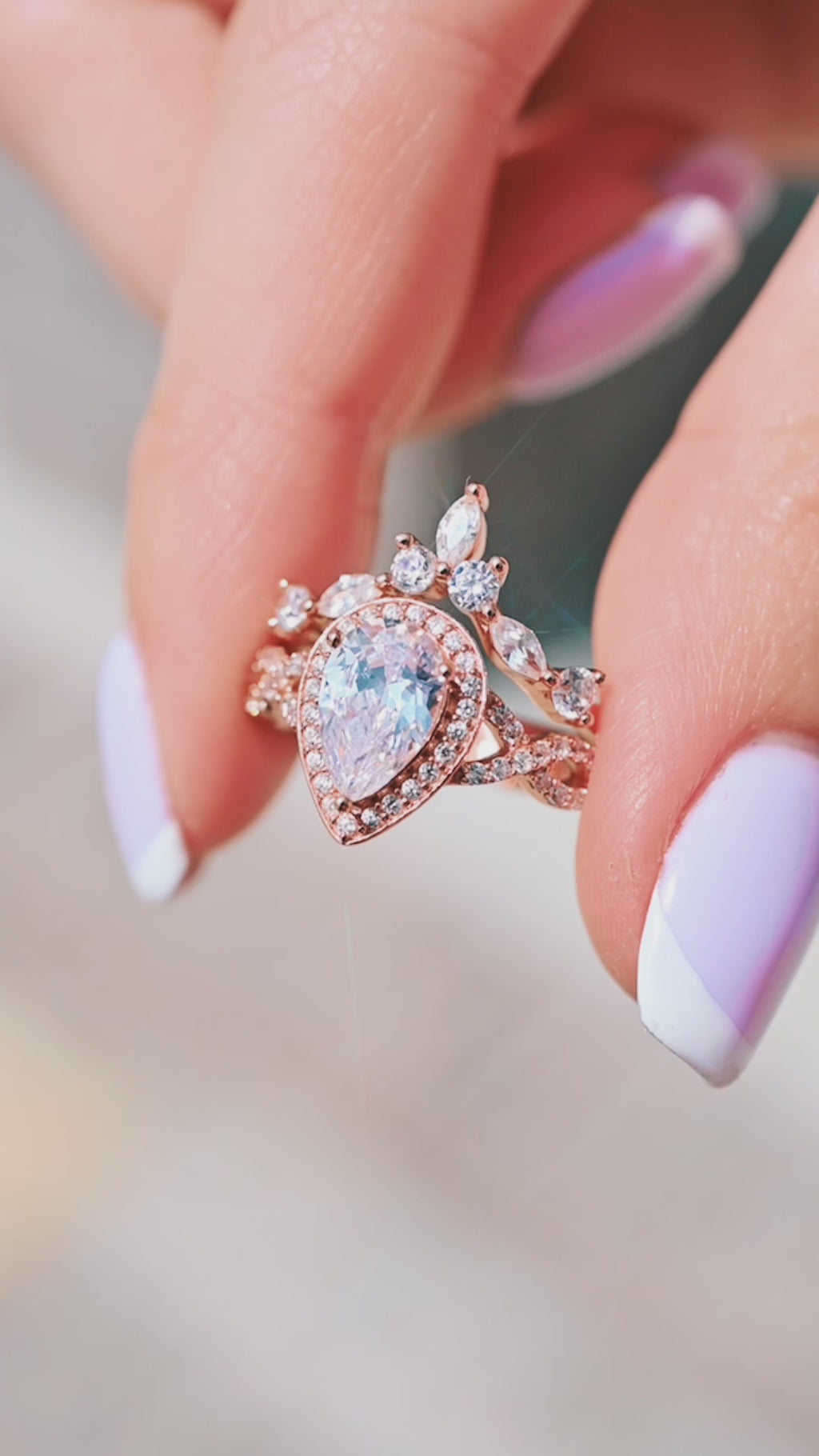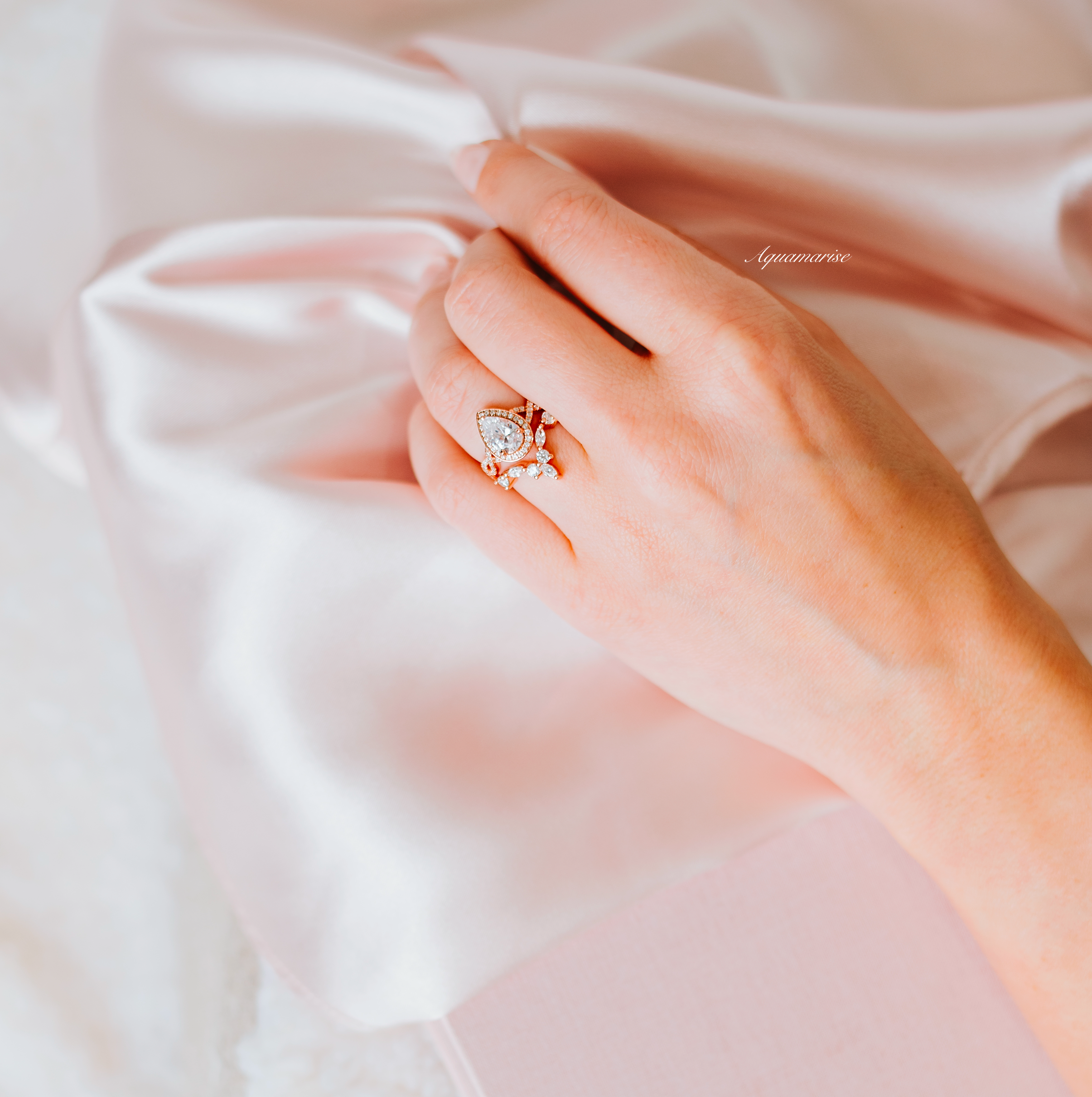 Nouveau Diamond (cz) Engagement Ring Set- 14K Rose Gold Vermeil
