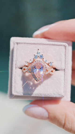 Nouveau Teardrop Morganite Ring Set- 14K Rose Gold Vermeil