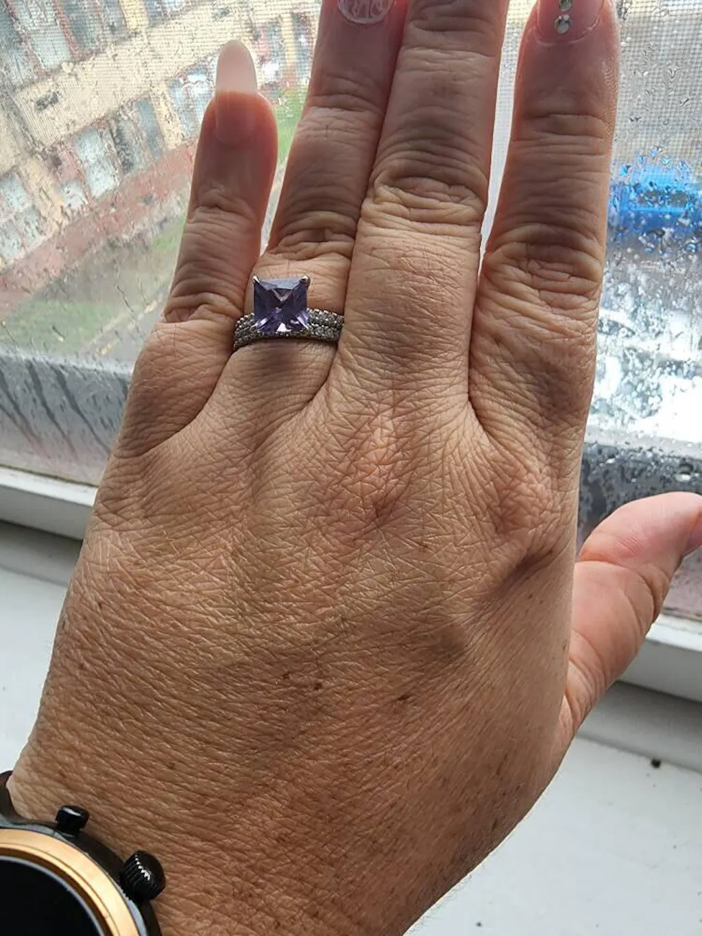 I was looking for alexandrite ring as my travel ring and came across this one. It took me a while to commit to the stone shape. I usually select rectangular shapes but this princess cut looks gorgeous in person! I bought it together with the sapphire ring and they both arrived very quickly. Packaging is very pretty! I love wearing this ring for its unusual color, very pretty cut and excellent craftsmanship. Highly recommend this seller! I'm already looking at other items here :)