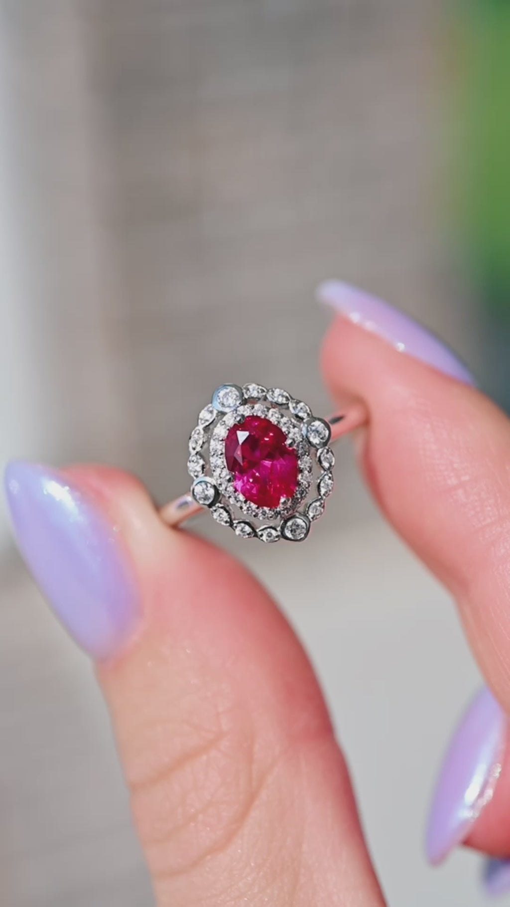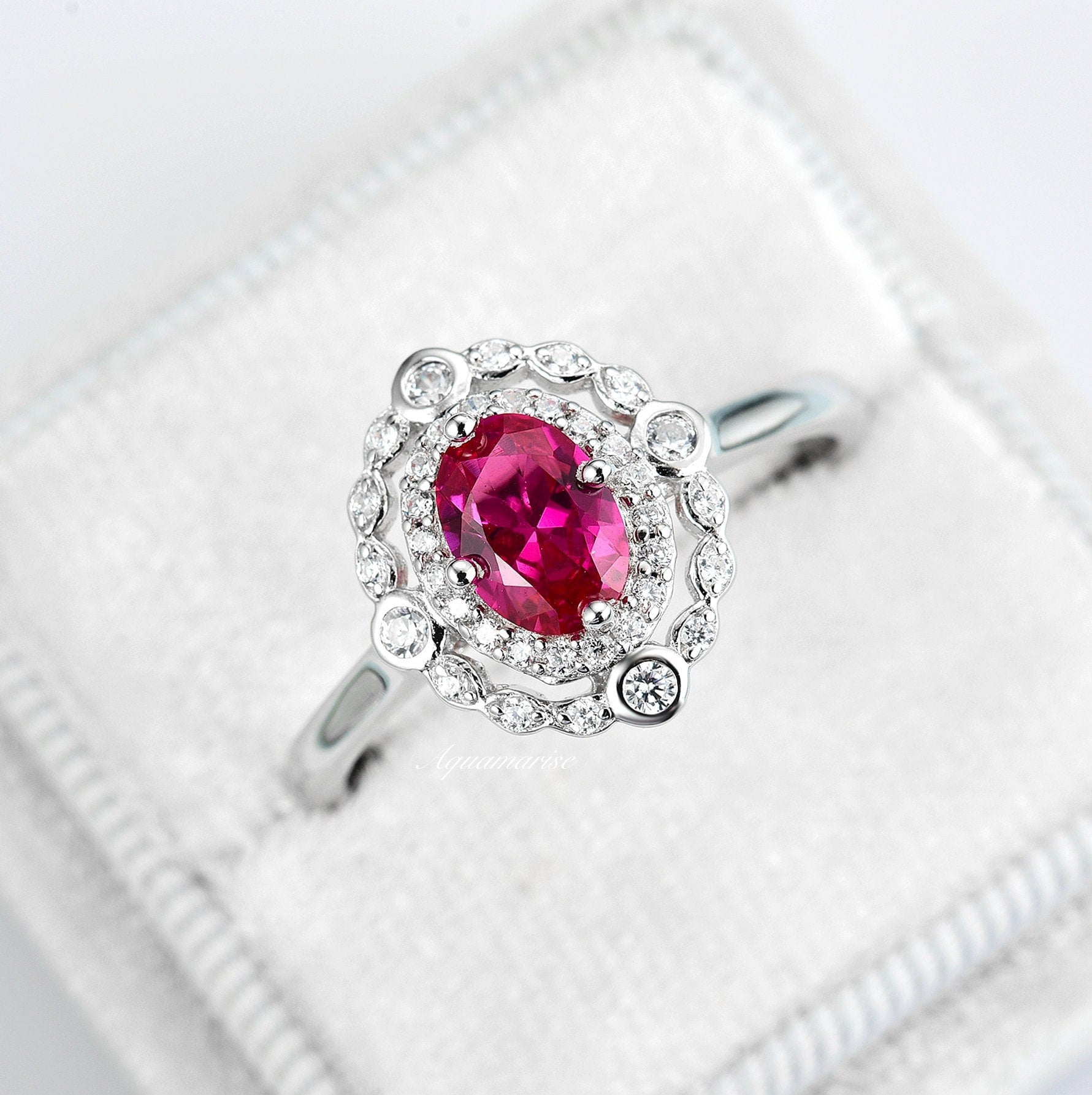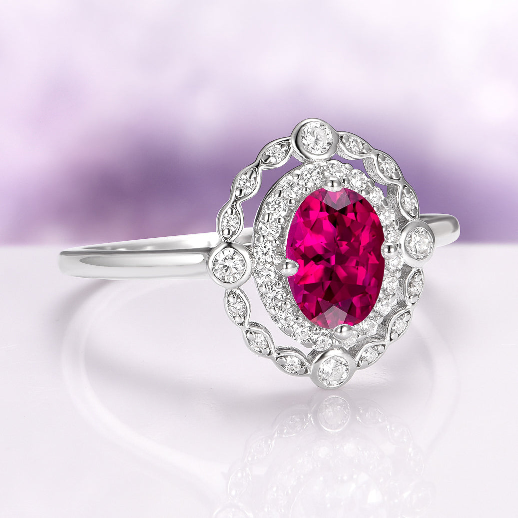 Valentina Art Deco Lab-Grown Ruby Engagement Ring in 14K White Gold