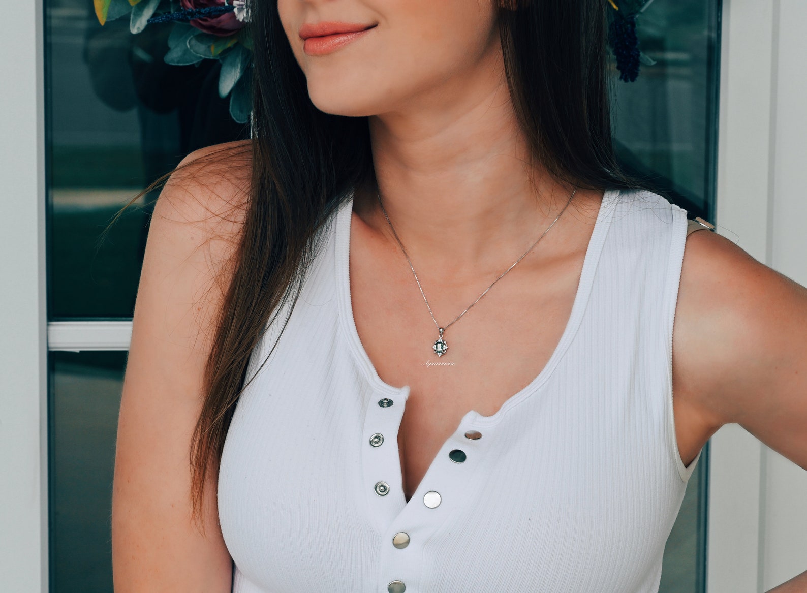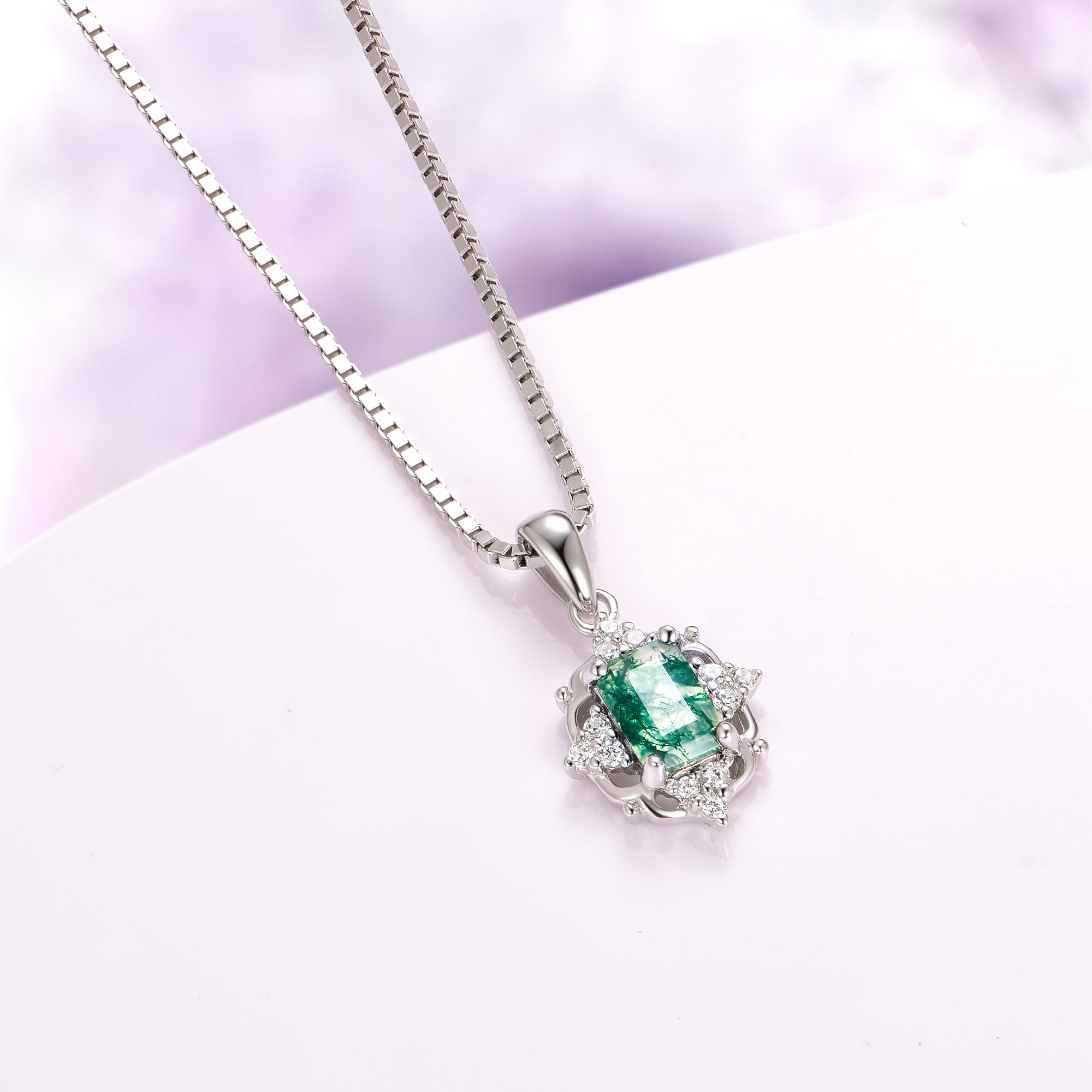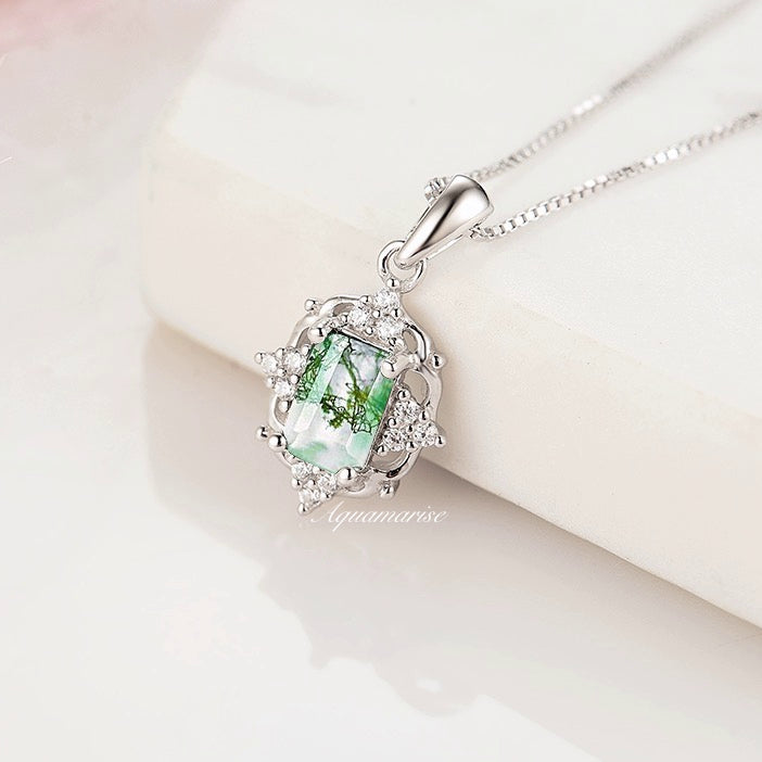 Claire Vintage Green Moss Agate Necklace in Sterling Silver