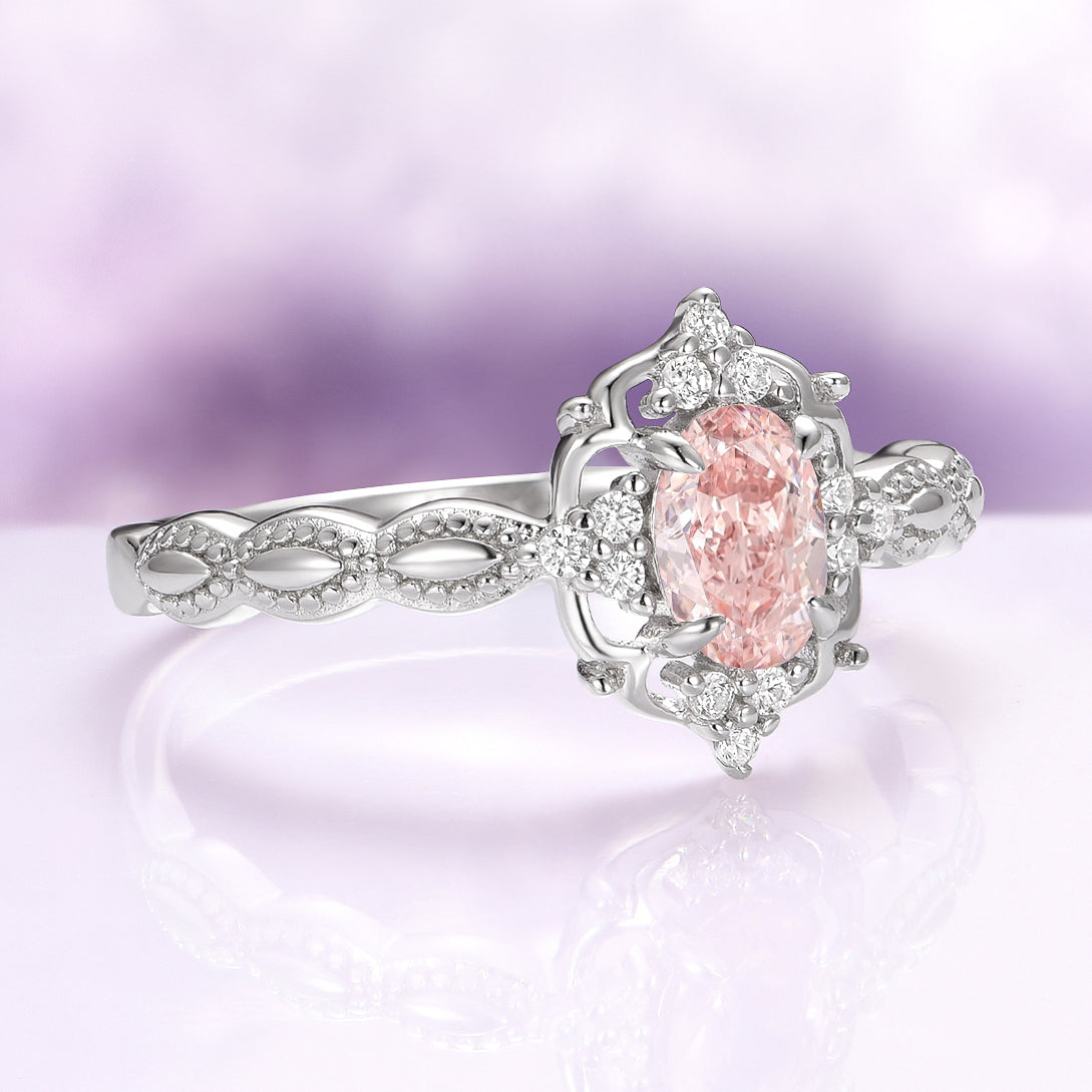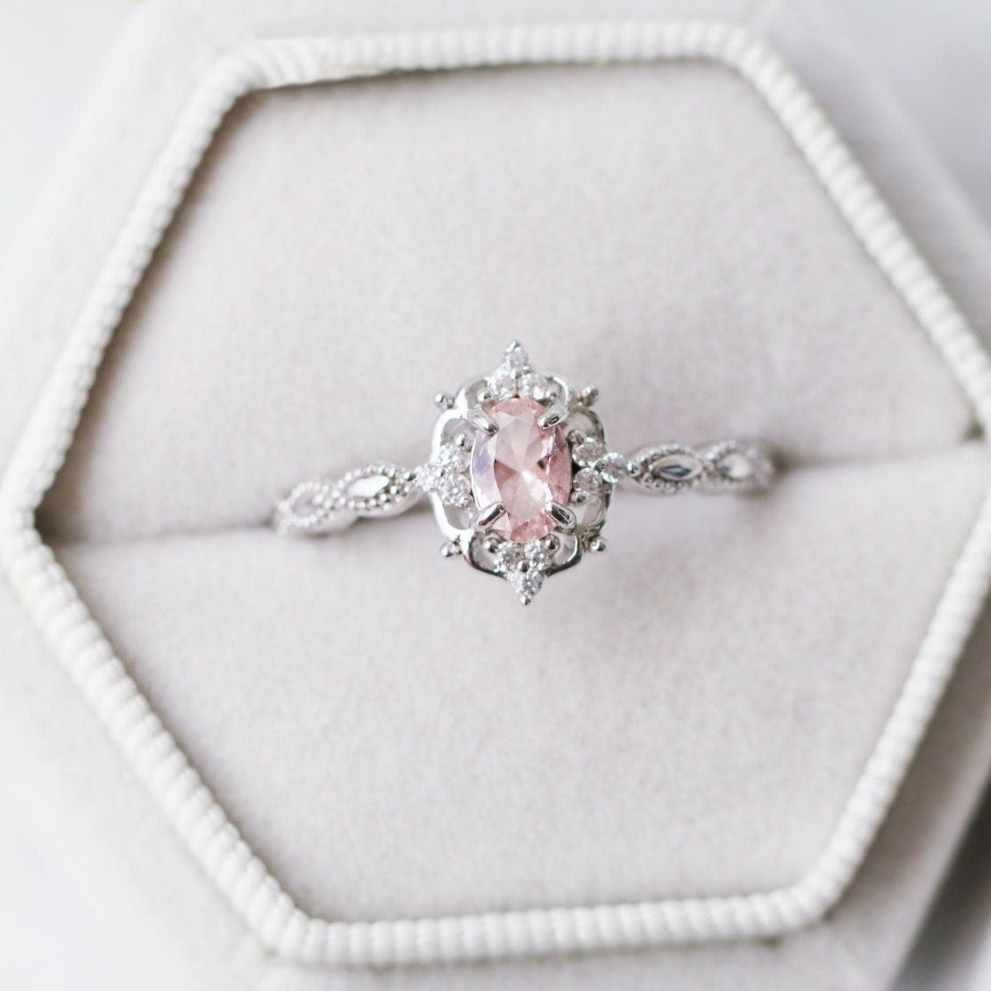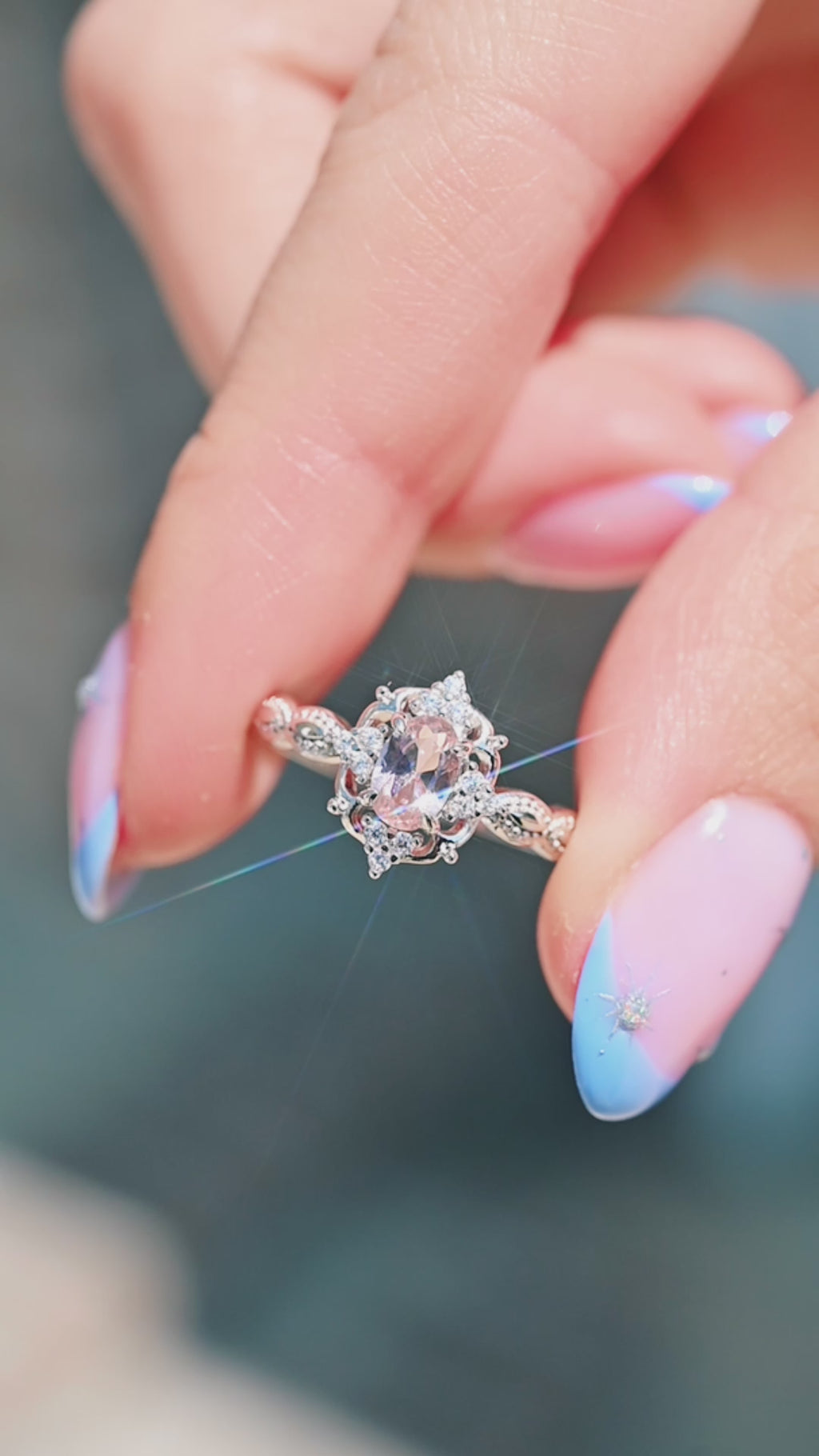 ► Her Ring: Elegant and romantic, her 925 solid sterling silver engagement ring showcases a sparkling 6x4mm (approx. 0.5 ct) simulated morganite center stone, accented by shimmering simulated diamonds (CZ). The vintage-inspired detailing celebrates love, devotion, and timeless elegance.