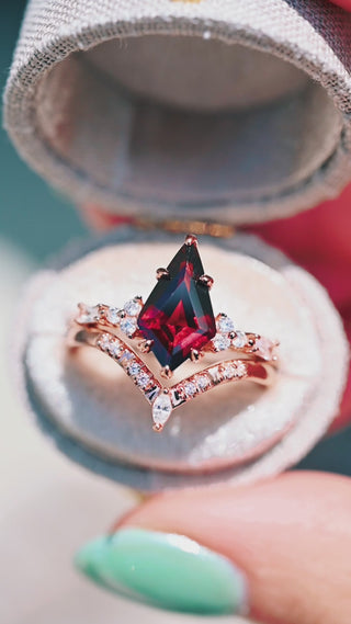 Kite Red Garnet Engagement Ring Set- 14K Rose Gold Vermeil